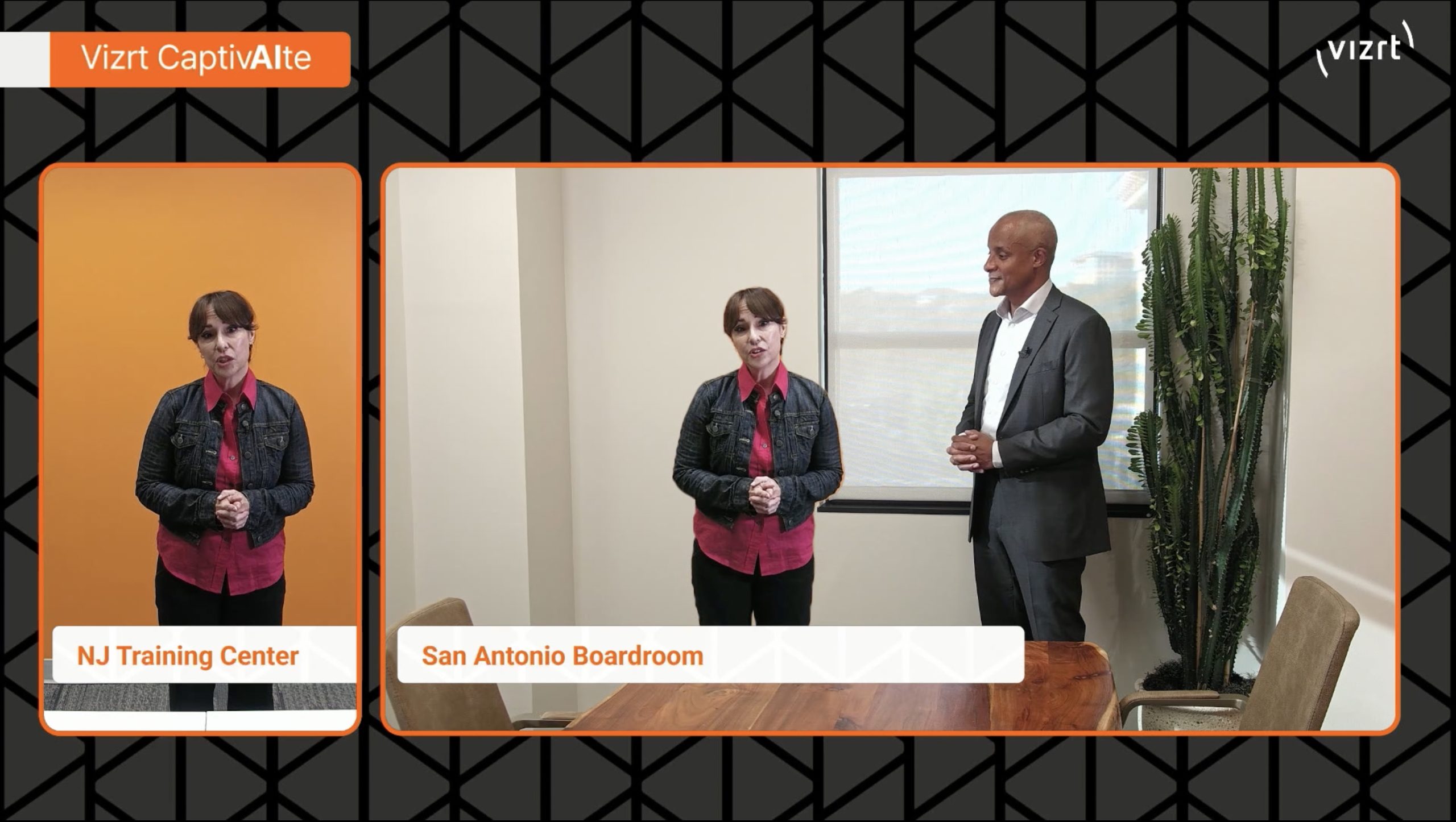 Vizrt CaptivAIte allows someone joining on Zoom to appear inside a Zoom Room as if they are standing there in person. Not inside a screen. Not confined to a video tile on the wall. They appear life‑size, in the same physical space, next to the presenter. The impact is immediate and shifts the energy of a meeting. Conversations feel more natural. People engage differently.
