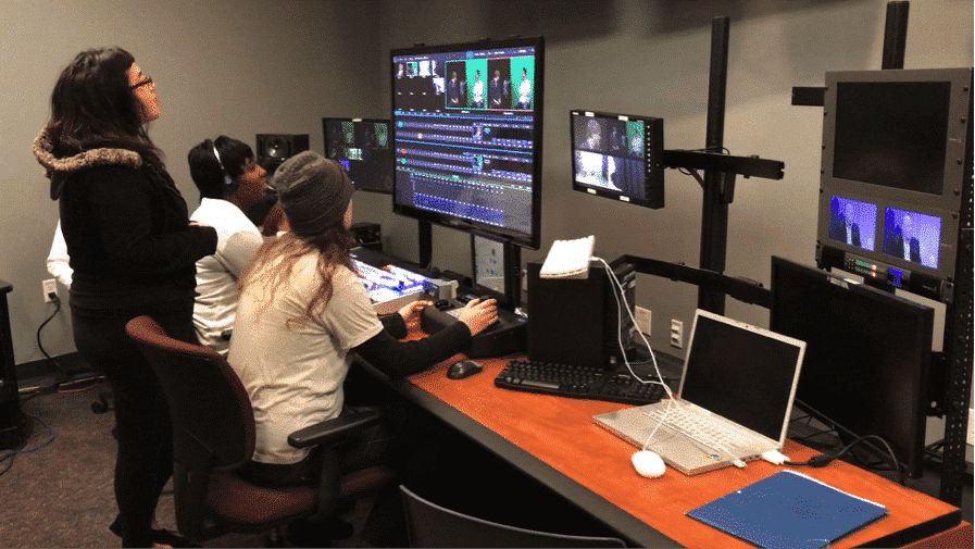 Montano stresses that’s it’s critical for students to be presented with relevant, deadline-driven opportunities. Throughout the course, students are required to do a lot of pre-production work, and they get a feel for live programming in a studio production class that features a NewTek TriCaster. While the productions are not actually broadcast “live”, they are produced live to tape, or more appropriately in today’s digital technology parlance, live to drive. Once the production begins they don’t stop until they’re done. If mistakes are made, they just have to keep going — just like in a real-world live production. And Montano gets them producing shows the first day of class.